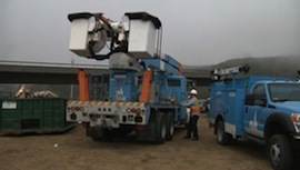 For the past three weeks, 15 crews of electric line workers replaced hardware on more than 100 poles. The work happened in foggy, brisk conditions in rugged terrain overlooking the windy two-lane Highway 1.