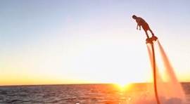 Learning to Fly the Flyboard is much easier than you might think. Many people ask us how hard it is to fly. When given proper instruction, and assuming the student can follow directions, most people will be out of the water and flying in the first five minutes, and many within 30 seconds. After 20 minutes or so, you could easily have the basics down and have good control of your movements over the water. Some have great balance and natural ability, and therefore will learn more quickly, but everyone will have a great time as they learn to fly. Your subsequent flights just get better, as you gain your ‘flying legs’.