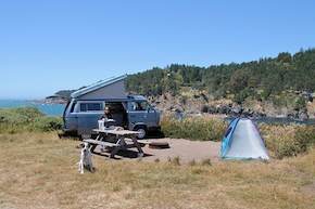 The owners have spent many years upgrading the campground. Hot showers and good toilets are available. The camp is on top of the bluff overlooking the ocean and beautiful Ocean Cove.