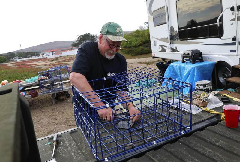 About noon Friday, 12 hours before sport fishermen were allowed to set their traps, the mood was festive at Doran Beach Regional Park. Camps were set, beers cracked and barbecues lit.